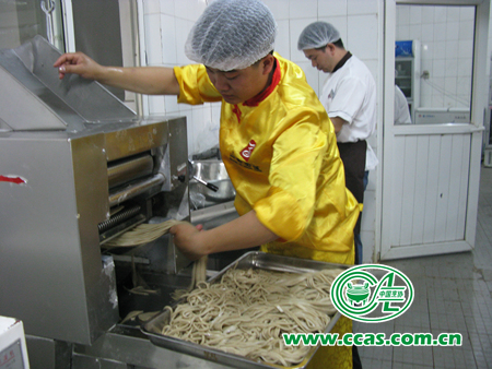 為保證小吃的質(zhì)量,部分主理名廚從當(dāng)?shù)夭少徚四艹浞旨ぐl(fā)小吃風(fēng)味的原料快遞到北京,如江浙風(fēng)味的湯包、山東風(fēng)味的排骨米飯等。5月27日下午報(bào)到之后各小吃主理又立馬投入到籌備中,馬不停蹄,甚至不曾休息喝口水。主理湯包的魏建新老師、山西的范愛東、楊剛師傅等,在當(dāng)晚加班到深夜,準(zhǔn)備出第二天的原料和設(shè)備。