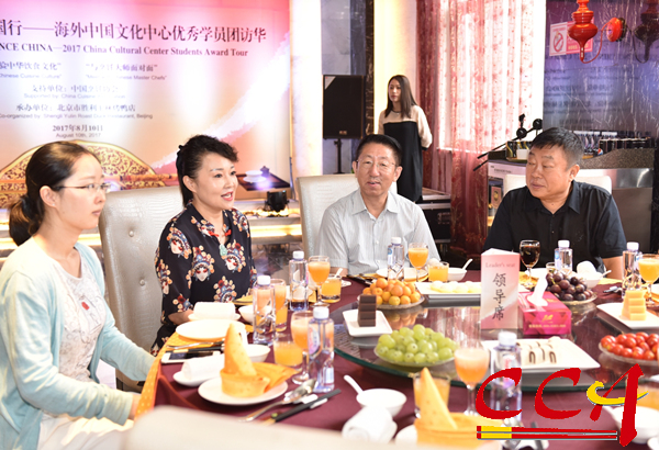 由文化部外聯(lián)局主辦、中外文化交流中心承辦的“2017文化中國(guó)行——海外中國(guó)文化中心優(yōu)秀學(xué)員團(tuán)訪華”從8月6日開(kāi)始來(lái)華訪問(wèn),經(jīng)過(guò)一系列美術(shù)、音樂(lè)、戲曲等中國(guó)文化考察后,全體團(tuán)員來(lái)到北京魯菜名店玉林烤鴨店,體驗(yàn)中國(guó)美食文化的經(jīng)典文化。文化部有關(guān)主管部門(mén)選擇中國(guó)烹飪協(xié)會(huì)承擔(dān)了這次文化體驗(yàn)活動(dòng)的設(shè)計(jì)和組織工作。中國(guó)烹飪協(xié)會(huì)副會(huì)長(zhǎng)邊疆、文化部中外文化交流中心合作與交流一處副處長(zhǎng)周子入、玉林餐飲集團(tuán)董事長(zhǎng)鄒勝利、玉林烤鴨店總經(jīng)理霍成、玉林餐飲集團(tuán)旗下品牌“一花一葉”總經(jīng)理邵斌、資深級(jí)注冊(cè)中國(guó)烹飪大師王志強(qiáng)、中國(guó)烹飪大師史連勇等出席了活動(dòng)。