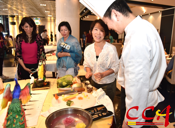 本次體驗(yàn)活動(dòng)設(shè)計(jì)了三次“與大師面對(duì)面”互動(dòng)節(jié)目,互動(dòng)給體驗(yàn)帶來(lái)了一波又一波的高潮。由王志強(qiáng)大師指導(dǎo)高徒制作的抻面細(xì)如絲發(fā),師傅手臂舞動(dòng),面絲有如神靈變成細(xì)絲,深深地吸引了學(xué)員們的目光。大家用眼睛看,用手觸摸,直觀地學(xué)習(xí)了這一獨(dú)具中國(guó)特色的面食的制作過(guò)程。由韓國(guó)孝大師帶來(lái)的果蔬雕刻技藝展演將體驗(yàn)活動(dòng)推向了第二波高潮。韓大師一手持胡蘿卜,一手持雕刻刀,三下五除二的功夫就將一截普普通通的胡蘿卜變成了惟妙惟肖的小麻雀,讓人驚嘆不已。由面點(diǎn)師傅們現(xiàn)場(chǎng)親授中國(guó)傳統(tǒng)水餃的制作方法,將整場(chǎng)宴會(huì)推向了最高潮?粗纥c(diǎn)師傅們以熟練的手法將白白胖胖的餃子一個(gè)個(gè)呈現(xiàn)在眼前,學(xué)員們將展臺(tái)圍了個(gè)水泄不通,在師傅們的指點(diǎn)下親手完成了讓自己自豪的作品。