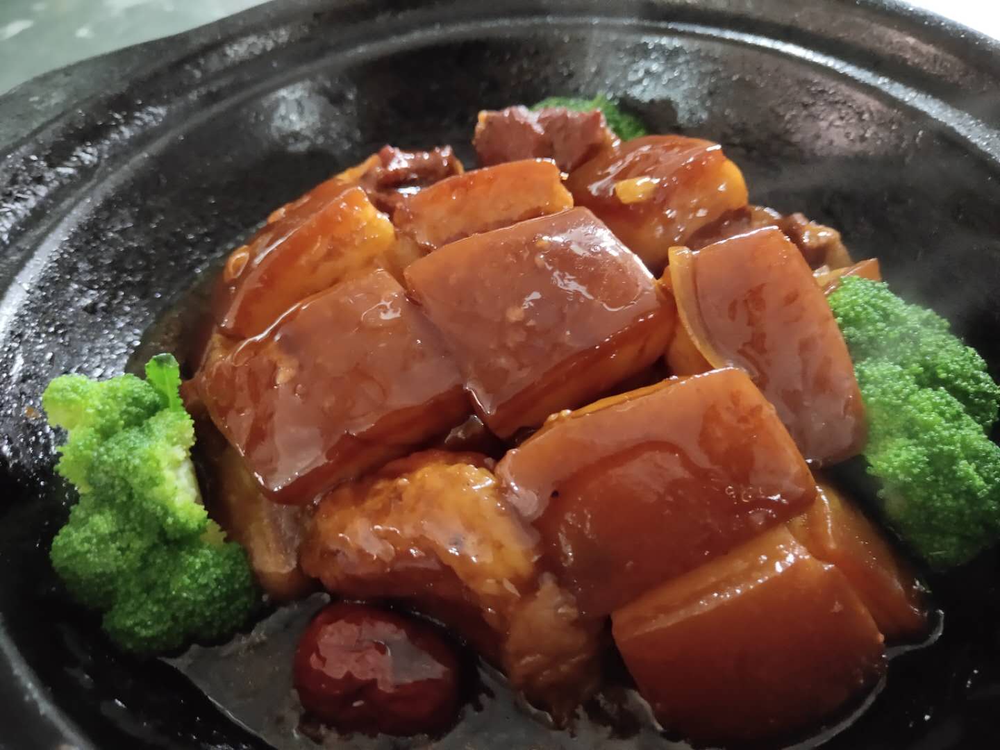 看色澤就知道肉已經(jīng)非常入味,整塊肉燉的十分軟爛,油脂幾乎要和皮肉分離。吃的時(shí)候牙齒幾乎不需要用力,飽滿豐腴的肉自己在唇齒間化開(kāi)。