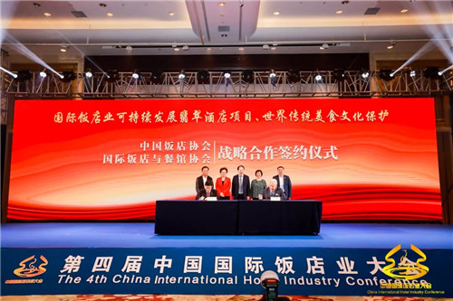 中國(guó)飯店協(xié)會(huì)與國(guó)際飯店餐館協(xié)會(huì)簽署“國(guó)際飯店業(yè)可持續(xù)發(fā)展翡翠酒店項(xiàng)目、世界傳統(tǒng)美食文化保護(hù)”戰(zhàn)略合作協(xié)議