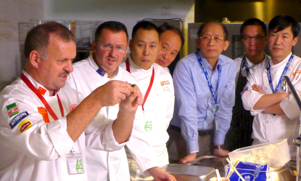 12月12日-13日,中國(guó)國(guó)家烹飪隊(duì)總顧問(wèn)、世界廚師聯(lián)合會(huì)亞洲區(qū)主席里克也來(lái)到上海,在國(guó)家烹飪集訓(xùn)隊(duì)駐地,對(duì)“2015中餐烹飪世界錦標(biāo)賽”中國(guó)國(guó)家集訓(xùn)隊(duì)參賽情況進(jìn)行回顧和總結(jié),提出階段性訓(xùn)練方向,對(duì)2016國(guó)際奧林匹克大賽注意事項(xiàng)進(jìn)行了細(xì)致的講解,親自動(dòng)手進(jìn)行了菜品上膠的教學(xué)展示。中國(guó)烹飪協(xié)會(huì)邊疆副會(huì)長(zhǎng)、聯(lián)合利華飲食策劃中國(guó)區(qū)陳意星總裁、中國(guó)烹飪大師李耀云、葛賢萼、中國(guó)烹飪協(xié)會(huì)國(guó)際賽事總監(jiān)朱一帆、中國(guó)烹飪協(xié)會(huì)副秘書(shū)長(zhǎng)張大海及教練組全體成員出席了此次國(guó)家隊(duì)集訓(xùn)活動(dòng)。