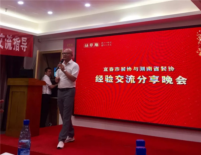 7月10日當(dāng)晚,在綠草地精品酒店會(huì)議廳舉辦了一場(chǎng)【宜春市餐飲行業(yè)商會(huì)與湖南省餐飲協(xié)會(huì)】經(jīng)驗(yàn)交流分享晚會(huì)。分享晚會(huì)上,湖南省餐飲協(xié)會(huì)終身名譽(yù)會(huì)長(zhǎng)周新潮對(duì)宜春市餐飲行業(yè)商會(huì)考察團(tuán)的到來(lái)表示熱烈歡迎,并表示:希望兩地加強(qiáng)交流,相互學(xué)習(xí),共同推動(dòng)餐飲行業(yè)健康持續(xù)發(fā)展。