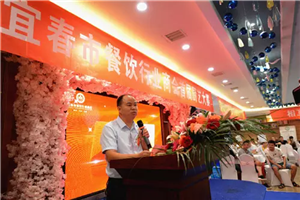 宜春市餐飲行業(yè)商會(huì)副會(huì)長及陸加壹餐飲有限公司董事長黃平冰致歡迎詞