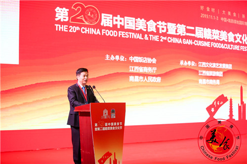 2019年11月1日,第二十屆中國(guó)美食節(jié)暨第二屆贛菜美食文化節(jié)在江西南昌綠地國(guó)際博覽中心隆重開(kāi)幕。國(guó)家商務(wù)部原副部長(zhǎng)姜增偉、中國(guó)飯店協(xié)會(huì)會(huì)長(zhǎng)韓明、江西省商務(wù)廳黨組書記、廳長(zhǎng)劉翠蘭、南昌市人民政府副市長(zhǎng)李松殿等出席開(kāi)幕式。